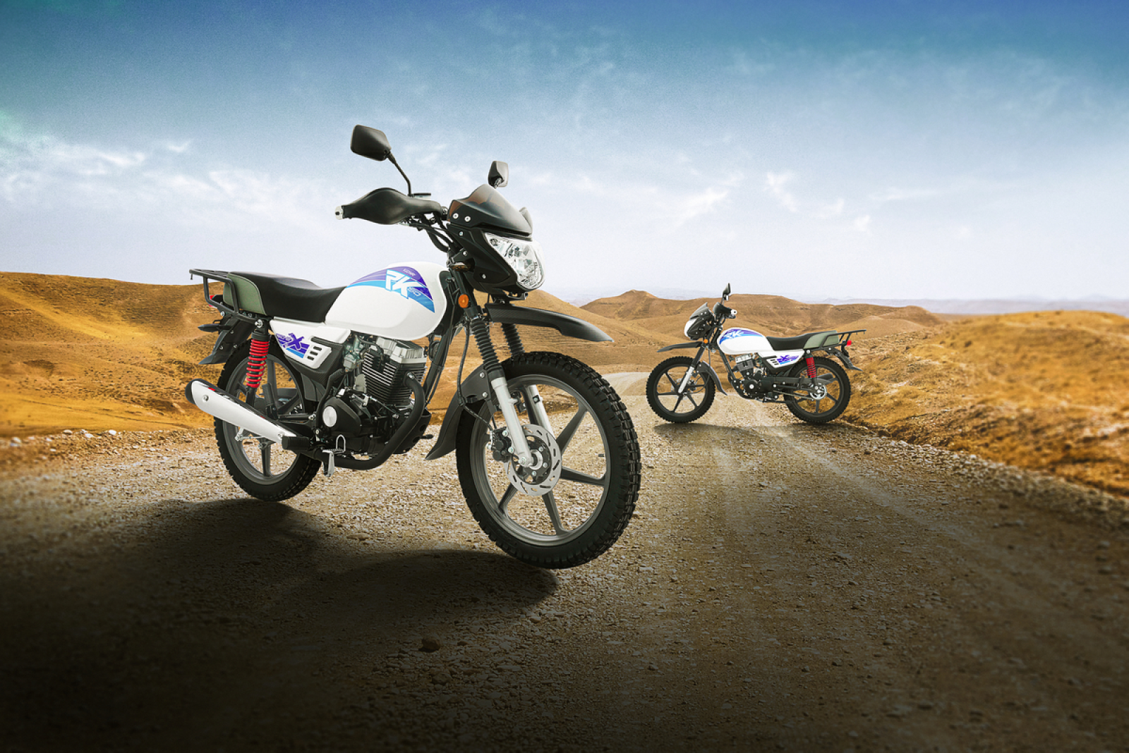 Equipped with eye-catching red dual rear shocks, the RK 150 EX smooths out rough city streets and absorbs off-road bumps with confidence. Add knuckle guards to protect your hands from trail debris, and this bike becomes more than just a means of transport—it’s a partner built for daily challenges and spontaneous adventures alike.